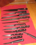 The knives that you see here are ones that I’ve collected over many years of cooking, both at home and in restaurants.  As you can see, it’s not a matched set!