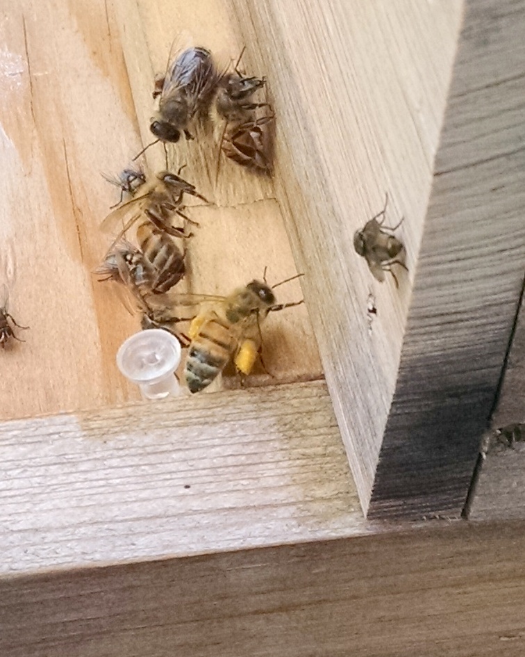 Now comes the sort of hard part–they are not due for a hive inspection until Friday–I have to content to watch them carrying pollen into the hive.