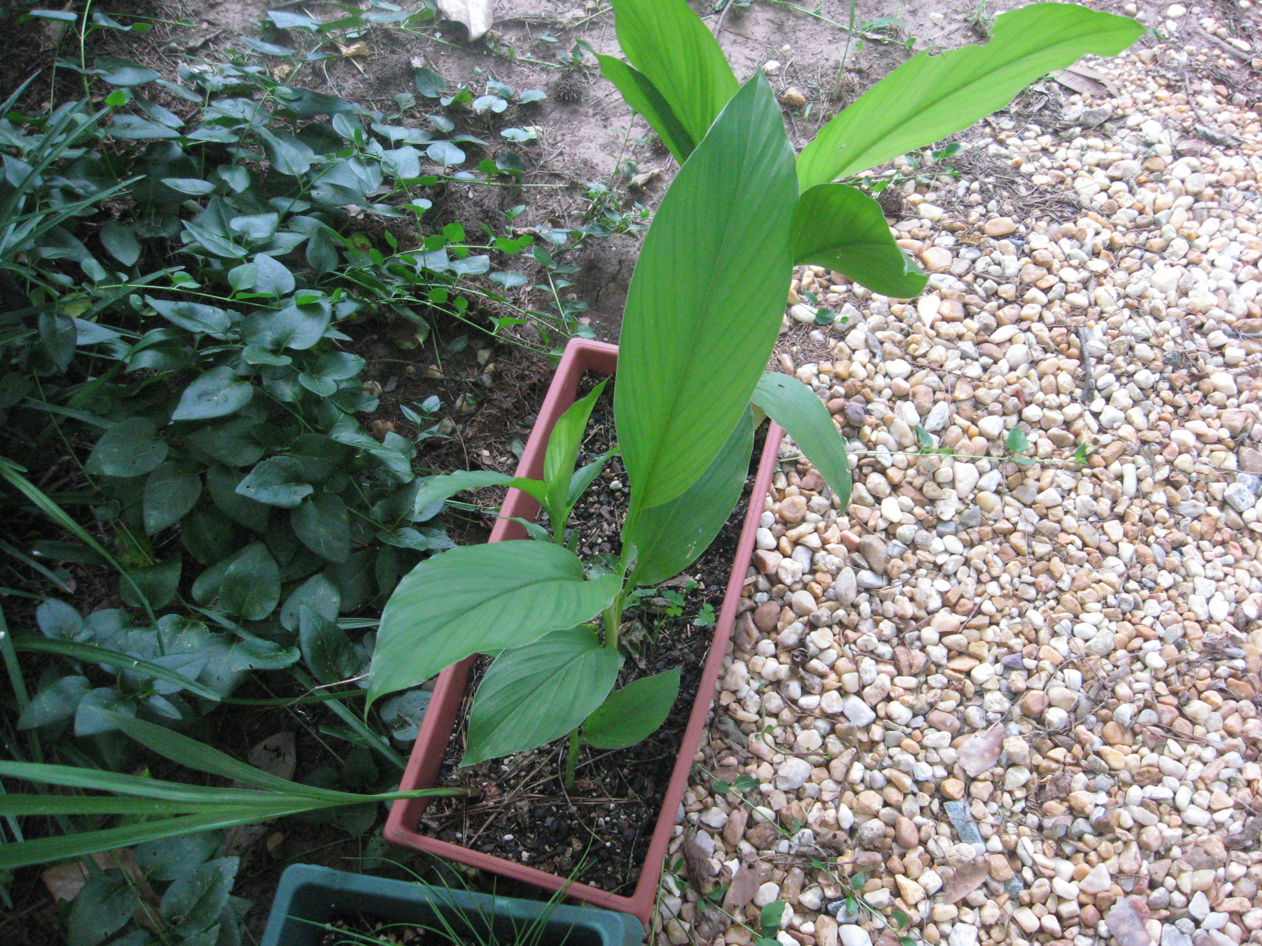 To grow your own, you’ll need the fresh rhizomes–found in Asian, Indian or Latina groceries–probably located close to the ginger, (and maybe the galangal). You’ll treat it almost as you would ginger: plant about one to two inches deep in a 12- to 14-inch pot (about 12 inches in depth as well), keep evenly moist but well-drained, and give it part shade to dappled shade. This is also a tropical perennial so it will need winter protection. In cool weather, the leaves will die back, but if not frozen the rhizomes should sprout again in the spring. (I tried keeping some, with the ginger, in the house to overwinter, but neither turmeric nor ginger survived as a plant; the rhizomes did put up shoots again in the spring.)