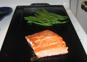 evening, from the griddle.  The filet was beautiful–skin on,  not a single bone that I had to pluck out with tweezers, and it was cut to just the size that I needed for a single serving.  It was griddle-ready.