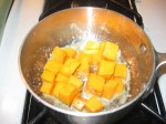 I decided that I’d steam sauté the squash, extravagantly with a bit of butter since the rest of the meal would be “lean”.  I used a paring knife to remove the skin and cut it into chunks so it would cook fairly quickly.