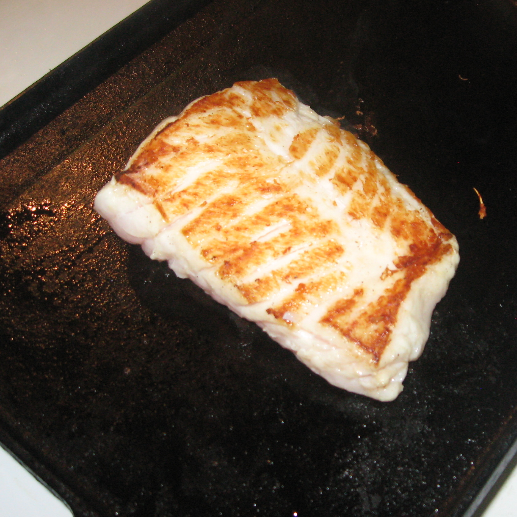 The fishmonger told me it was sort of like grouper and would do well grilled.  The heat being what it was this afternoon (my thermometer in the shade said 97 ° F ), I thought that grilling was out of the question so I opted for the cast-iron griddle –my standby.