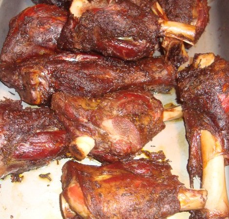 This is something I’ll do again, soon…the smoke flavor was not overwhelming, but very complementary to both the lamb and the goat and it was low-maintenance cooking, thought it took about 3-1/2 hours, that let me visit and relax while preparing it.  Perhaps the next thing to get smoked will be a goat leg.  The vendors from whom the goat shanks were purchased said that they had recently tried smoking a leg and it was excellent.  I’m glad that I discovered the post on smoking lamb shanks–and the associated information on smoking.