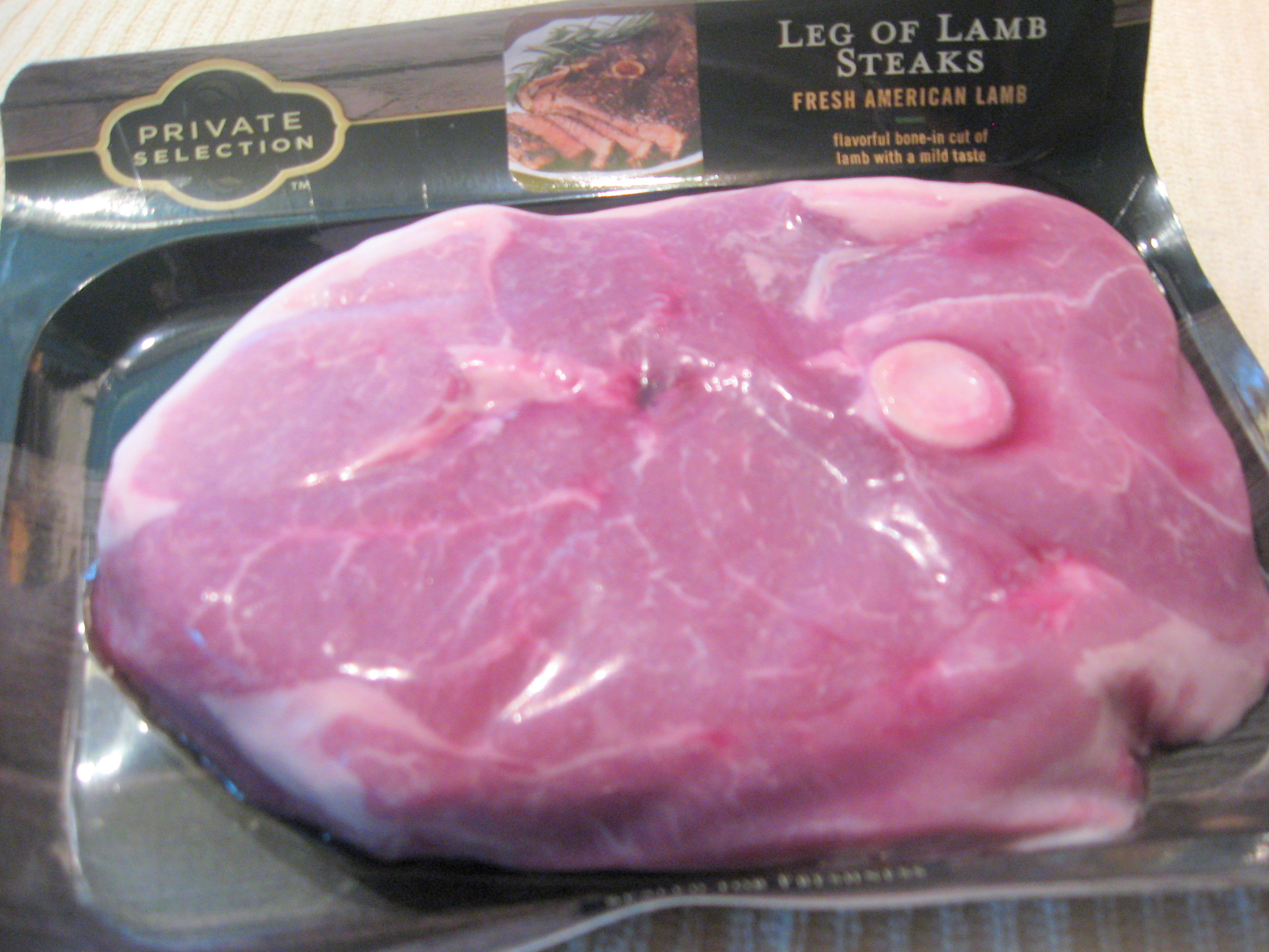 IMG_8327I’m an omnivore–and that definitely includes meat in judicious amounts. Lamb shoulder chops get frequent use in my kitchen since they are readily available, relatively inexpensive, and tasty. Lamb chops or a rack appear seldom, unfortunately, since they are expensive; braised shank will appear occasionally, but leg of lamb almost never–unless I’ve organized my self to invite lamb-loving friends to share.  Even a half leg is just not in the single-serving category, so much as I like it, I don’t get it very often.